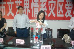 捐赠仪式结束后,市委宣传部副部长、市文联党组书记陈明明对全市文艺界当前工作作出部署,一是要把当前的工作重心转移到抗震救灾上来;二是积极参与义务献血;三是要求文艺界人士立即着手创作团结人心,鼓舞士气,声援抗震救灾的文艺作品。