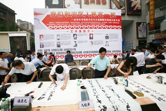 翰墨丹青千古事,义卖义捐寸心知。2008年5月24日上午,由达州市文联、通川区工商联、通川区红十字会主办,达州大世纪集团、达州市美术家协会、达州市书法家协会等多家单位承办的 “我们和灾区人民在一起——达州市书画家为汶川大地震赈灾现场义卖义捐”活动在达城世纪广场隆重举行。