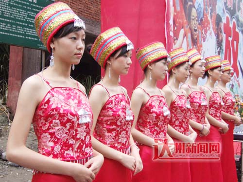 身着土家族服装的迎宾小姐