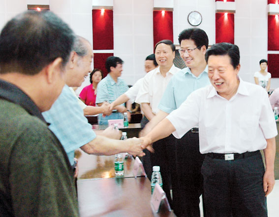 8月29日下午,全国政协副主席、中国文联主席孙家正借出席第七届中国金鹰电视艺术节之机,到湖南省文联考察工作。中共湖南省委书记、湖南省人大常委会主任张春贤,中国文联党组成员、副主席杨志今,湖南省政协副主席、省文联主席谭仲池等陪同考察。