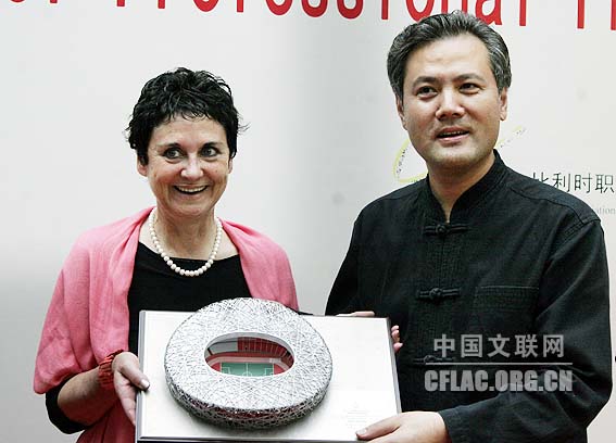 李前光向尼克·胡兹回赠礼品。中国文联网 郭青剑 摄