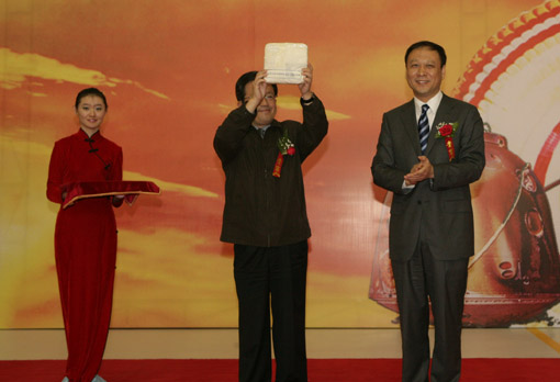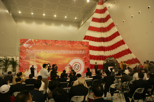 “神舟七号”返回舱开舱暨搭载物品交接仪式10月1日在中国空间艺术研究院举行。图为交接仪式现场。中国文联网 孟祥宁 摄