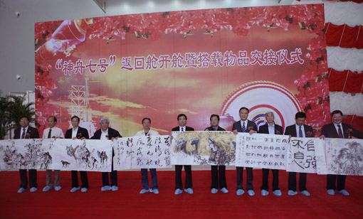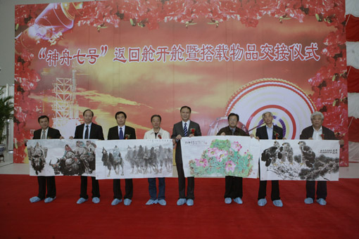 “神舟七号”返回舱开舱 搭载书画作品揭开面纱