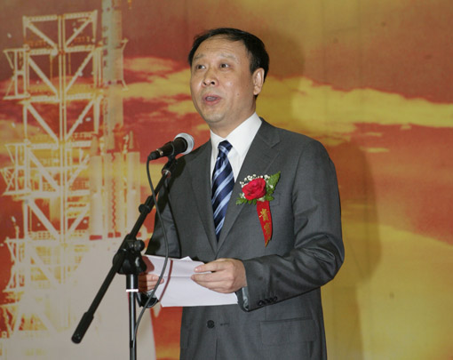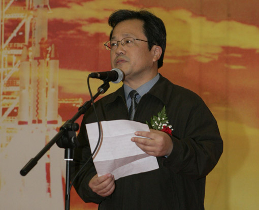 中国空间技术研究院院长杨保华在交接仪式上讲话。中国文联网 孟祥宁 摄