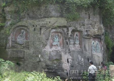 据了解,广福寨位于开江县广福镇街道西一公里处,海拔600米,面积20余亩,秦汉时期就开始有人居住,先后在寨上建有亭子街、玉帝宫、王母殿、观音阁、戏楼等古建筑。随着岁月的流逝以及政治和战争的影响,上述古建筑只保留了部分遗迹遗址。幸运的是,南北朝以来的能工巧匠镌刻在广福寨水洞门崖壁上的四个佛龛基本保存完好。佛龛皆为穹窿形顶,龛内造像神态安祥、端庄大方。其中特别引人注目的是壹号石龛内的男观音造像,该造像通高1.5米、宽1.3米。脸型团圆,顶部前头盖骨有少许残缺;面相祥和、静穆,极具民族化、世俗化特点,是该县迄今为止保存较完好的南北朝时期男观音造像。