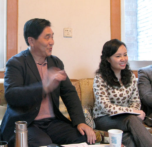 市文联主席马骏华热情地与文艺家交换意见