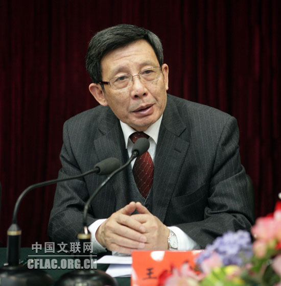 2月25日,中国文联召开深入学习实践科学发展观活动总结暨2008年度先进集体和先进个人表彰大会。图为中央学习实践活动第15指导检查组副组长、陕西省政协副主席王晓安讲话。中国文联网 孟祥宁 摄