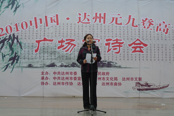 2月21日(正月初八)下午3时30分,2010中国·达州元九登高广场赛诗会在市中心广场进行。年仅6岁的小女孩王姿颖深情的朗诵了《九月九日忆山东兄弟》,丰富的表情和悦耳的童声将诗歌的真挚情感表现得淋漓尽致,引来广场观众的阵阵掌声。