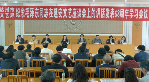 会上,全市广大文艺工作者认真学习了毛泽东同志《在延安文艺座谈会上的讲话》原文,深入学习了李长春同志在全国宣传部长座谈会上发表的《以改革创新精神推动社会主义文化大发展大繁荣,努力探索中国特色社会主义文化发展道路》的讲话精神,并结合学习了文艺表彰活动相关政策规定。
