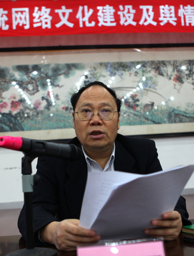 目前,网络已经改变了我国社会舆论的生态环境,形成了崭新的网络舆论场,在新的舆论格局中具有不可替代的重要地位。研究熟悉网络,重视网络文化建设和舆情的处理,学会应用网络获取信息,了解民意,汇集民智,熟悉利用网络传播、推广先进文化,加强广大文艺家与党和政府以及人民群众的沟通,将文联的工作有序地推展和延伸,是新形势下各级文联必须面对的新课题。省文联党组正是在这样的背景下,于一年前就调研、准备。黄启国在讲话中特别强调了“互联网已经成为重要的文化创作平台、文化产品传播平台和文化消费平台,网络文化已经成为人们精神文化生活的重要组成部分。如何加强网络文化的引导和管理工作,是摆在四川文艺工作者面前的一项紧迫、艰巨的任务。”他要求四川各级文联和文艺工作者,要将加强网络道德建设,为网络建设铺设文明健康之路,加强网上文艺舆论引导巩固和发展积极向上的主流文艺舆论,加强网络文化产品的创作生产,提供更多更好的网络文化产品和服务,抓好舆情信息工作,完善舆情工作制度和机制,他说:“要把社会主义核心价值体现在网络文化的实践中,讴歌真善美,鞭挞假恶丑,传播先进文化,抵制腐朽文化,更好地引导各种文化思潮和文化追求,丰富群众的精神文化生活。”省文联机关党委书记、副主席兼秘书长杨时川要求文联系统各单位、各部门把网络文化建设和舆情信息工作纳入计划,树立全局意识,完善运行机制,全面收集信息报送突出重点,保证信息畅通,建立长效机制,并强化保障措施。杨时川特别要求,各单位各部门的领导应转变传统的工作思维和方式,将网络延展为文联工作的“第二办公区”,充分掌握并运用网络为文艺工作服务。要熟练地运用QQ、邮箱等网络通讯工具,转变传统工作方式,使之成为工作的有力抓手。