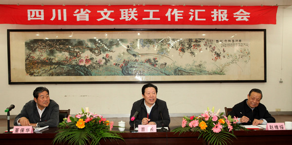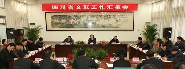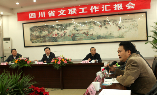 四川省文联党组书记、常务副主席黄启国,党组副书记、副主席杨茂成,陈黔鲁,机关党委书记、副主席、秘书长杨时川以及主席团成员,各省级文艺家协会负责人,机关各处室负责人参加了汇报会。
