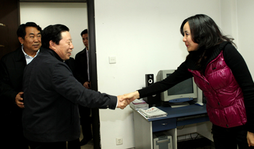 孙家正参观省曲协办公室,与省曲协秘书长李蓉亲切握手