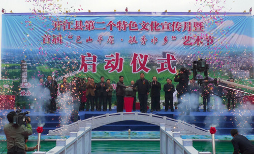 启动仪式由开江县县长王成同志主持。县委书记王善平同志致辞,中共达州市委宣传部副部长、市文联党组书记常荣代表市委宣传部、市文联对启动仪式表示了祝贺,并祝特色文化宣传月和艺术节圆满成功,通过活动强力助推开江文化强县建设,促进经济文化全面发展。开江县委常委、宣传部部长王铮在启动仪式对特色文化宣传月和艺术节的组织过程、目的、意义作了详尽说明。中共达州市委常委杨钢宣布启动仪式开始,并与开江县委书记王善平一道按下了仪式启动按钮。五彩的焰火、迷人的烟花、激悦的音乐,把启动仪式推向了高潮。