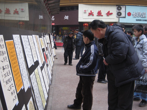 本网讯 1月29日上午,时值新春佳节和“元九”登高节即将来临之际,为了丰富广大市民的节日文化生活,增添欢乐祥和的气氛,由中共达州市委、达州市人民政府主办,达州市文联、达州市文广影视局承办,达州市书法家协会、达州市文化馆协办的2011年中国•达州“元九”登高节“元稹诗文书法专题展”在大北街文化广角橱窗展出。
