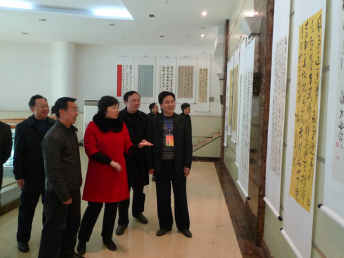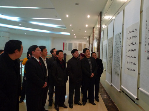 何平一行参观书法作品展