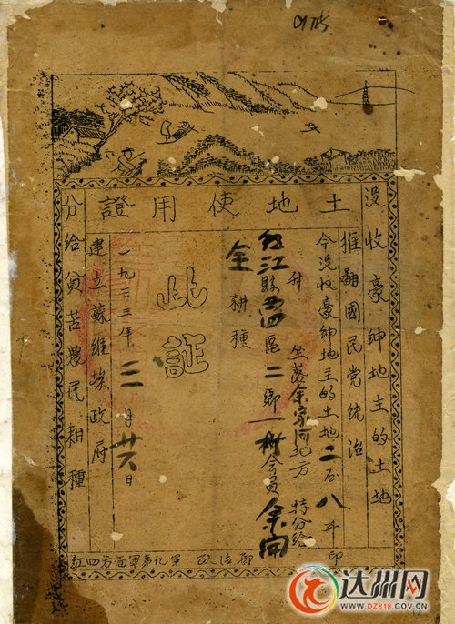 红四方面军土地使用证(在川陕苏区颁发的)