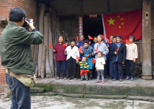 9月下旬,达州市首届“十大健康百岁寿星”出炉,这些老寿星大多都居住在农村山区,很多人没有拍过照片。今年国庆期间又恰逢九九重阳节,于是万燕明放弃休息,带上他订做的有天安门和国旗的背景布,给百岁老人和敬老院里的老人们照相,为老人留下幸福的节日照和晚年照,让老人们过一个有意义的国庆节和重阳节。