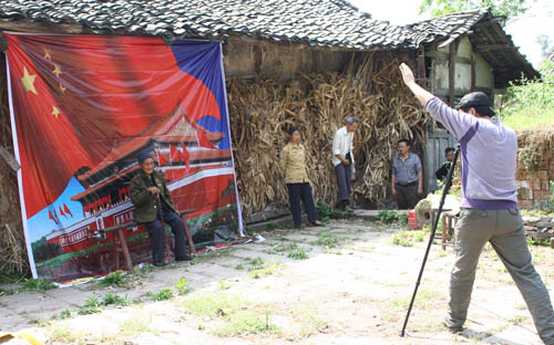 在纪念中国共产党成立90周年之际,6月初的一天,万燕明带着他的“移动照相馆”,专程前往达县边远的赵固乡锤虹村2组,为达州市建国前入党、已百岁高龄的老党员孙安寿老人照相。