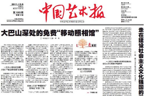 2011年12月9日《中国艺术报》一版头条(截图)