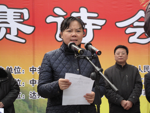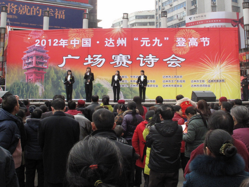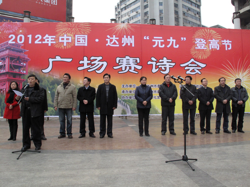 本网讯 值新春佳节和“元九”登高节之际,为营造欢乐祥和的节日气氛, 1月30日下午,由市委、市政府主办,市委宣传部、市文广影视局、市文联承办,市文化发展研究会、市作家协会、市诗词协会等单位协办的2012年中国•达州“元九”登高节广场赛诗会在中心广场隆重举行。市委常委、宣传部长杨娟出席开幕式并致辞。市政协副主席郝德恒主持开幕式。