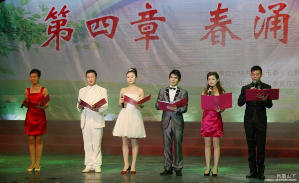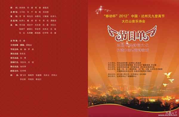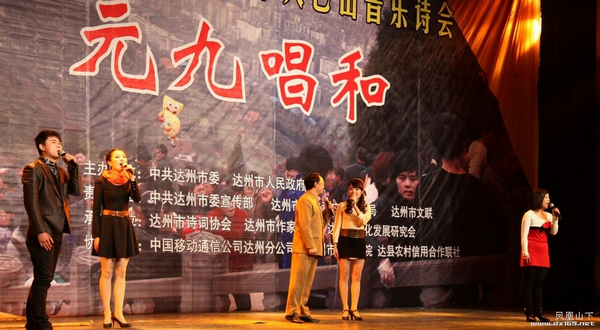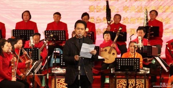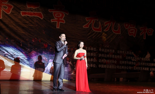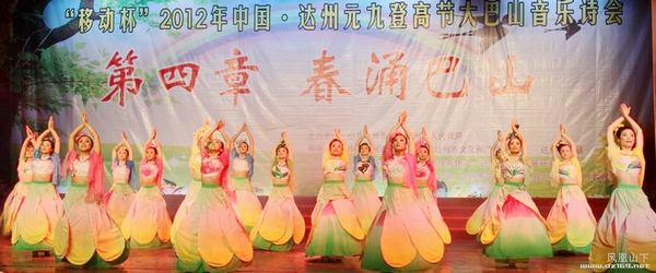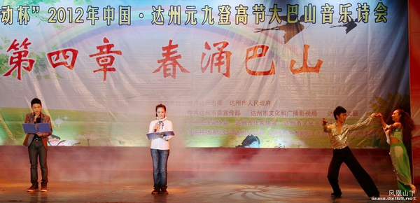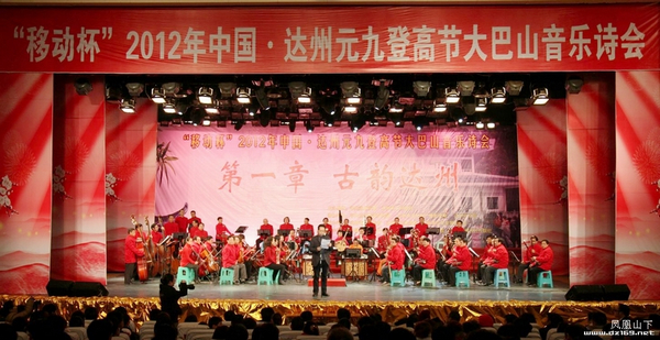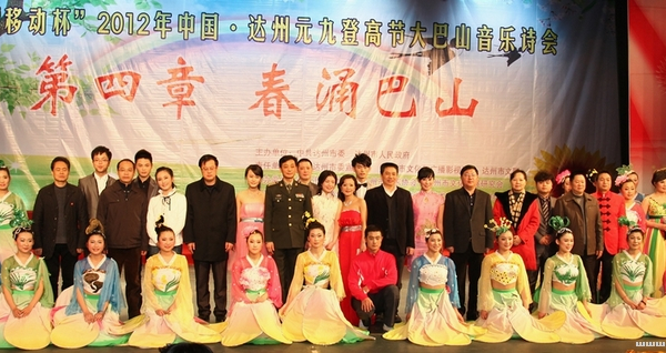 本网讯 龙腾盛世千家喜,春满神州万象新。作为2012中国•达州元九登高节重要活动之一的大巴山音乐诗会于2012年1月31日(正月初九)晚在达城市中心广场演展中心浓情上演。达市人大常委会主任、市诗词协会名誉主席胥健观看晚会并致辞。