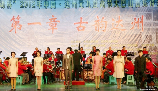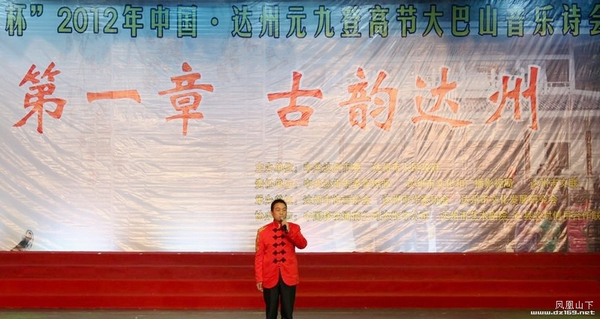 胥健在致辞中说,2012年中国•达州元九登高节大巴山音乐诗会隆重举行,既是元九登高节的一项重要活动,更是中共达州市委、市人民政府认真贯彻落实党的十七届六中全会精神,大力弘扬中华文化,推动文化大发展大繁荣的具体行动。他说,巴山雄奇,风光独秀;渠江浩荡,人文鼎盛。钟灵毓秀、人杰地灵的达州,从古至今就是一块诗意盎然的热土。元稹、刘禹锡、陆游等诗坛巨擘曾留下千古绝唱;李冰如、段可情等文学先贤诞生于此;梁上泉、叶知秋、杨牧等达州籍著名诗人蜚声中华诗坛。近年来,新崛起的“巴渠诗群”更是生机勃发。一年一度的元九登高节,其广场赛诗会盛况空前。去年10月底成立的达州市诗词协会及创办的《大巴山诗刊》等,为把达州打造成“中国•西部诗歌城”奠定了坚实的基础;特别是大巴山音乐诗会对弘扬中华诗词文化、繁荣巴渠诗歌创作、丰富群众文化生活、建设幸福达州必将产生重大影响。