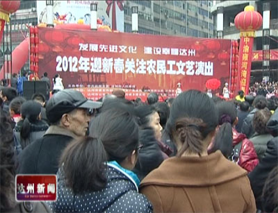 达州新闻网讯 由市委、市政府举办的迎新春关注农民工文艺演出1月25号在达城中心广场上演。