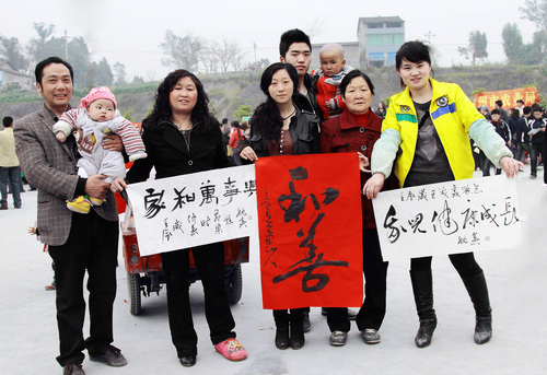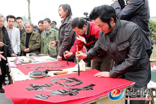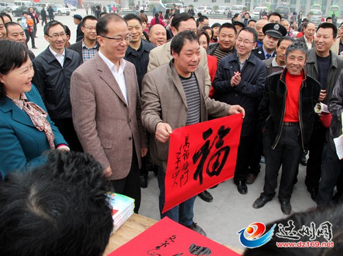 焦伟侠、杨娟等走到各单位布置的展台前,仔细向工作人员询问相关情况,并与前来咨询的老百姓悉心交谈。在市文联组织的展台前,由市美协指派的画家王朝兴、曹文勇,市书协指派的青年书法家凌灿印、姚春等挥毫泼墨埋头创作,一幅幅精美的字画作品被等候在旁的群众“迫不及待”地取走;由市摄协指派的摄影家李学余、万燕明聚精会神为群众照“全家福”。看到这一热闹的场面,焦伟侠、杨娟等领导十分高兴,当场向一位农民朋友赠送了由青年书法家书写的一个“福”字,并祝这位农民朋友全家幸福安康。焦伟侠认真翻阅了正现场向群众赠阅的《巴山文艺》,称赞这本由市委宣传部主管、市文联、市作家协会主办的文艺刊物“办得不错”,并要求文联就是要组织艺术家经常把精美的精神食粮送给广大群众,不断满足基层群众对优秀文艺作品的渴求。
