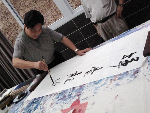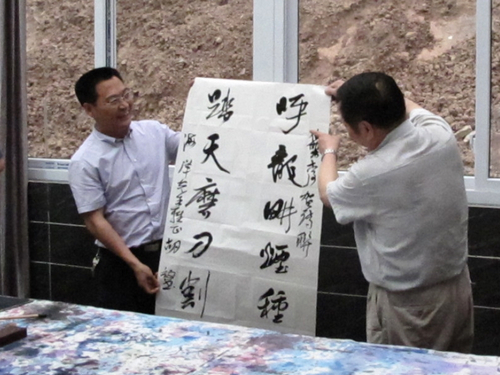 两地书法家在“大世纪书画院”进行了书艺交流笔会。广安市文联副主席、广安市书协主席、中国书法家协会会员胡放,广安市文联秘书长、广安市书协副主席、中国书法家协会会员周永生,广安市书协副主席胡旭冰、中国书法家协会会员,达州市文联主席、达州市书法家协会主席、中国书法家协会会员马骏华,达州市书协副主席、中国书法家协会会员凌灿印等现场挥毫泼墨,墨香四溢,引来阵阵掌声。四川文理学院党委书记李万斌,达县县委副书记、达县人民政府县长杜海洋到笔会现场向来访客人表示热烈欢迎并观摩书艺交流。
