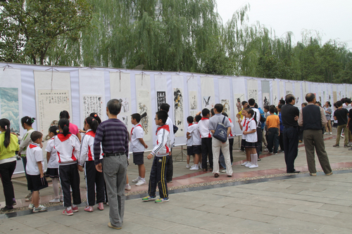 县委常委、组织部长熊文琦,副县长孙曼妮,县政协副主席张念一、书画家李世浩及退休老干部等领导出席开展仪式,副县长孙曼妮致开幕辞,县委常委、组织部长熊文琦宣布展览开始,来自城区部分学校的师生、书画爱好者及社区群众共计1000余人观看展览。