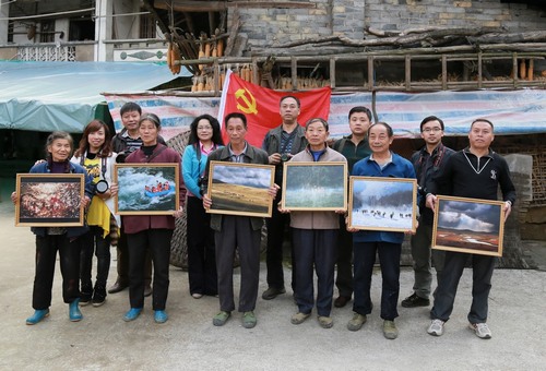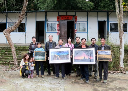 志愿者们还驱车来到平滩乡社区,社区书记黄学新见摄影志愿者到来,急忙迎上前接过摄影作品,感激地说道:“一定将作品挂在社区办公室墙上最显眼的位置!”