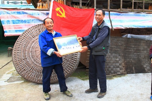 >志愿者肖光泉向村民赠送自己的作品<
