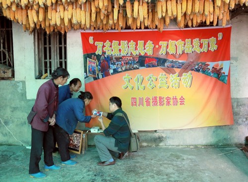 >10月18日,达州摄影志愿者来到达县平滩乡社区和水桐坝村6组,开展摄影惠民活动,让祖祖辈辈在田垄劳作的村民,看一看“外面的世界”<