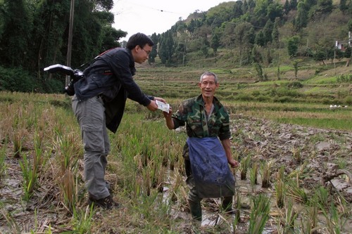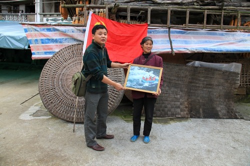 村民嘴口中的“牌牌”,其实就是摄影志愿们用精美画框装裱的摄影作品。“我们农民也不晓得啥子叫摄影作品,‘牌牌’叫起顺口些”,村民伍成高这样解释道。村党支部书记伍祥兵将村班子成员召集拢来,一边维持秩序,一边组织村干部、村民们领取摄影作品。