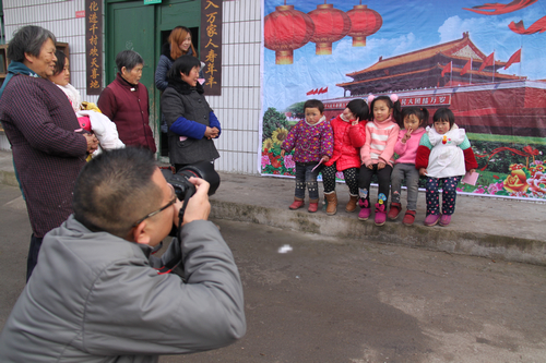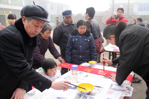 书画美术志愿者,自带笔墨纸砚,现场挥毫泼墨,为村民义务书写春联。摄影志愿者,免费为村民拍摄全家福并现场打印、赠送照片。同时,县委宣传部的理论专家还给广大村民宣讲十八大精神并发放宣讲资料。现场村民无不嬉笑颜开,纷纷表示:“开展这样的活动真好,既学习了十八大精神,特别是知晓了关系他们切身利益的相关农村、农业政策,还能不出门就领到春联、照相、拿到照片,党的好政策好哇!”