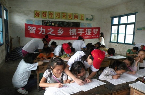 大学生们在花萼乡小学与部分留守学生开展了暑假作业辅导、互动游戏和畅想中国梦的活动。小分队还带着慰问品去看望了三位留守老人,帮助他们做家务活、打扫清洁和拉家常,为留守老人送上他们的爱心和温暖。