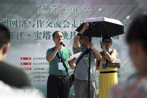 市委宣传部副部长陈东,市文联副主席、市作家协会主席邹亮,市作协名誉主席、旅美作家陈官煊出席本次活动。达州作协网络专委会、达州网络写作交流会负责人,达州、巴中、广安、湖南等地作家、诗人、网络写手,达州新闻界、音乐界、摄影界、美术界人士共70余人参加了采风。