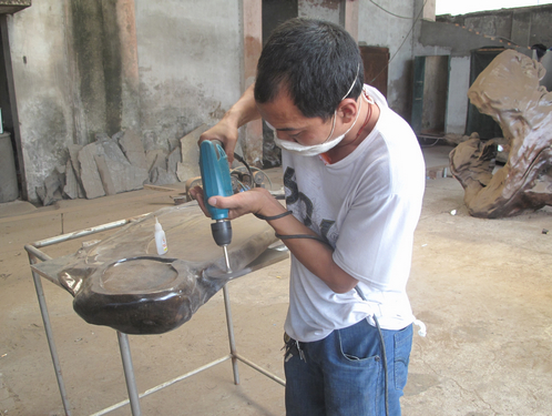 >“楠香苑”根艺作品加工现场<