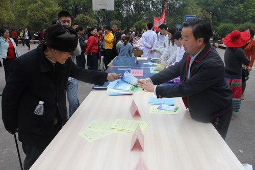 早上9点,在东城社区广场,服务活动一开始,闻讯而来的社区居民在一排桌椅前自觉排队接受义诊。市医疗卫生单位的医生立即投入到义诊活动中,为社区居民量血压、测血糖,回答居民的各种健康咨询。市文联组织各协会干部职工为居民送资料、解疑难,为广大社区居民带来了春风般的服务。