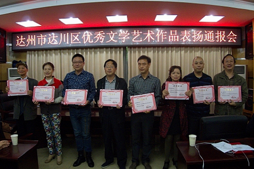在表扬通报会上,区文联常务副主席罗六清介绍本次评奖情况;赵宜炳等优秀文艺工作者上台领奖;符纯云代表获奖者在会上谈了获奖感言。(达川区文联)