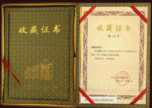 马骏华书法作品被人民大会堂收藏