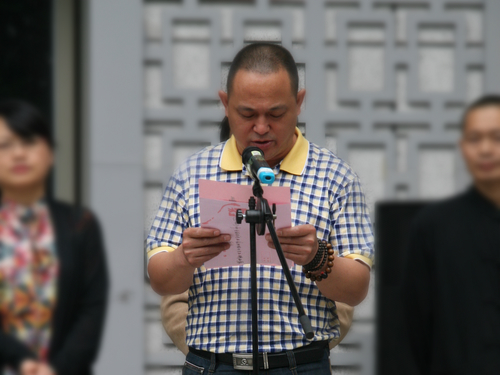 >四川省根雕奇石协会秘书长谭勇到会祝贺<