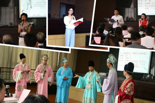 诗歌朗诵是诗会的重要内容。一首屈原的《橘颂》,通过达州新世纪学校教师陈涌深情并茂的朗诵,让人心潮起伏,诗绪万千。由市艺术剧院张黔生导演,徐晓辉、聂少红等6人表演的情景古诗朗诵《六相诗会》,用新颖独特的演艺形式,再现了唐宋时期曾在古通州(今达州市)工作过的张商英、韩滉、元稹等六位宰相的旷世才情和历史功绩,让人穿越时空回味悠长。随后,市作家协会杨书梦朗诵的《元稹,涅槃的诗魂》、市诗词协会杨晓琴朗诵的《再别康桥》、播音主持培训中心杨柳朗诵的《我的中国,我的母语》可谓声情并茂,让人诗意飞扬。特别是四川文理学院文化与传媒学院、诗词俱乐部派出了阵容强大的朗诵队伍,随着《屈原,一个并不遥远的的符号》、《沁园春·观武胜龙舟赛》、《我是青年》、《致橡树》,不仅诗作首首经典,而且朗诵水平极为专业,将诗会推向了高潮。市文化发展研究会推荐的组诗《春涌巴山》,以MTV的方式,用画面和文字的述说,在诗歌的意境中展示了达州“通达开放、诚义创新”的崭新画卷。诗会在达州知名女歌手谭蕾演唱的歌曲《欢聚一堂》中圆满结束。