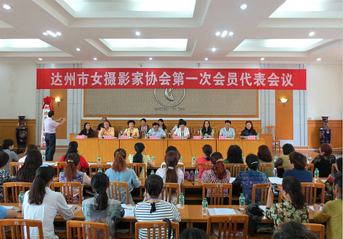 本网讯 9月17日,达州市女摄影家协会第一届会员代表大会在达州日报社8楼会议厅举行。市政协主席、市政协书画摄影研究院院长康莲英,达州市文联主席丁长兴,市妇联党组书记、主席张晓东,四川省女摄影家协会主席何军等领导和嘉宾以及我市部分文艺界名人出席了会议。会议通过了《达州市女摄影家协会章程》,并选举产生了以龙梅为主席的第一届主席团成员。康莲英和何军现场为达州市女摄影家协会授牌。