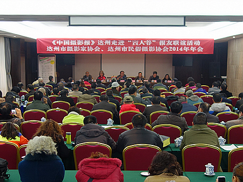 中国摄影报有关领导,中共达州市委宣传部副部长、市文明办常荣,达州市文联主席丁长兴,渠县政协主席许平,中共渠县县委副书记陈谋,渠县人民政府副县长敬永香等领导出席会议并致辞和讲话。大会由达州市摄影家协会主席、达州市民俗摄影协会主席李开杰主持并作2014年工作报告。中国摄影报总编助理社委会成员、图片视觉总监、影像后期专家、大型摄影展策展专家车万坤到会主讲《心的舞台》专题讲座,受到与会者欢迎。会中,中国摄影报还对300余幅摄影作品进行了评审,共计40幅作品入选。