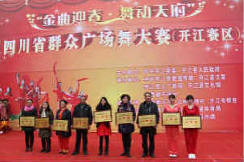 本网讯 2015年1月4日下午,由中共开江县委、开江县人民政府主办,中共开江县委宣传部、县文联、县文广新局、开江县文化馆、华西都市报社承办的“金曲迎春·舞动天府”四川省群众广场舞大赛开江赛区在开江县橄榄广场广场精彩上演。来自开江县的10支参赛队伍在现场进行了巅峰对决。
