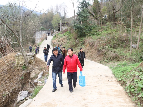 随后,文艺家一行又来到了白果乡白果坝村,看到乡村连到户、家家修建水泥路、经果产业促致富的新村风貌,让人心旷神怡。这里的联户路是乡村发动、能人劳动、党员鼓动、全民推动的成果,为万源市推行民生工程建设,实行“甲供材料,甲管材料”经验提供了实践基础,为当地农村公路为主的基础设施建设,解决资金投入困难,减少投资成本做好了示范。