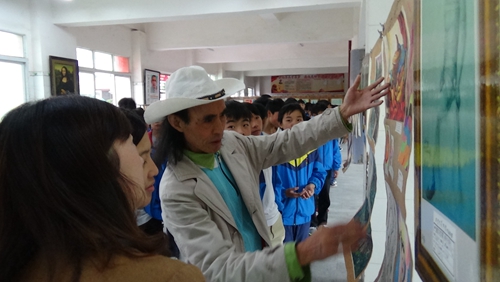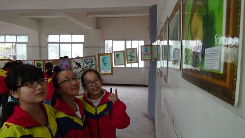 这次活动共展出美术作品160余件,有油画、水粉、水彩、素描、工笔等,油画《蒙娜丽莎》《圣母》《春已来临》,水彩《红苹果》《龙观老街夕阳红》《巴山农舍》让同学们一个个沉醉在艺术的海洋,画家田启明还为同学们耐心细致的介绍了每幅作品的创作历程,为山区的孩子们诠释着艺术的神圣与伟大。