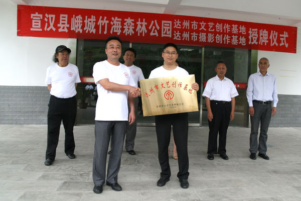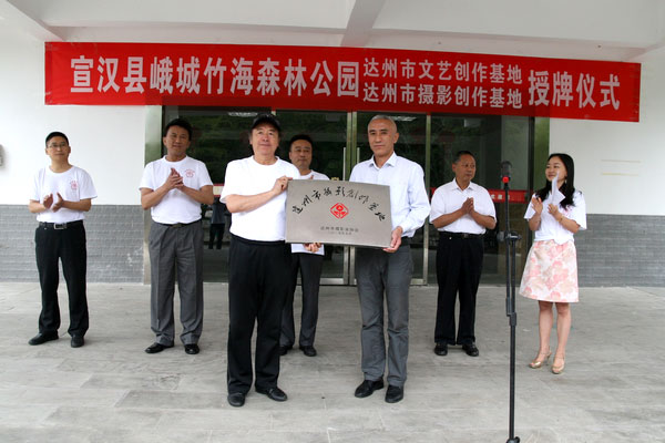 市文联副主席肖朝萍主持仪式并宣读《达州市文联关于授予“四川宣汉峨城竹海森林公园”为“达州市文艺创作基地”的决定》。市委宣传部纪检员、市文联党组书记姚军为四川宣汉峨城竹海森林公园授牌“达州市文艺创作基地”,宣汉县委宣传部副部长、文联主席姚启进接牌。市摄协主席李开杰为四川宣汉峨城竹海森林公园授牌“达州市摄影创作基地”,峨城竹海森林公园负责人向绍杰接牌。市文联副主席邹亮、贺享雍出席授牌仪式。