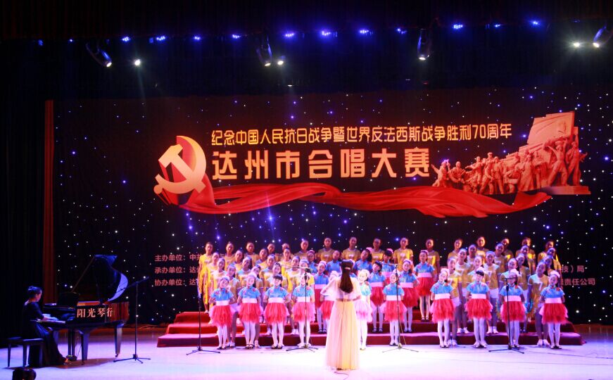 本网讯 6月12日,由市委宣传部、市文体广新局、市教育局主办的“达州市纪念中国人民抗日战争暨世界反法西斯战争胜利70周年合唱大赛”在达州市演艺大厅举行。